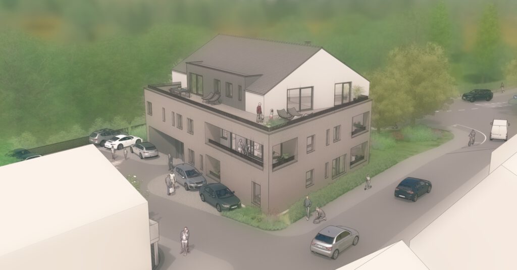 Unser Neubauprojekt – mitten im Kirchdorf Frielingsdorf – wird als Klimafreundlicher Neubau (KfW40) erstellt. Beim Bau wird sehr auf eine nachhaltige Bauweise gesetzt und nachwachsende Rohstoffe verwendet. Die insgesamt 9 Wohnungen werden im Holz-Ständerwerk gebaut und das Objekt verfügt über eine energieeffiziente Luft-Wärme-Pumpe, die über eine Indach-Photovoltaikanlage unterstützt wird.